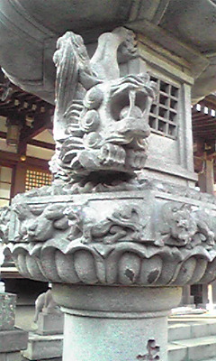 ちょっと見づらいのですが、灯篭にくっついているのが狛犬、