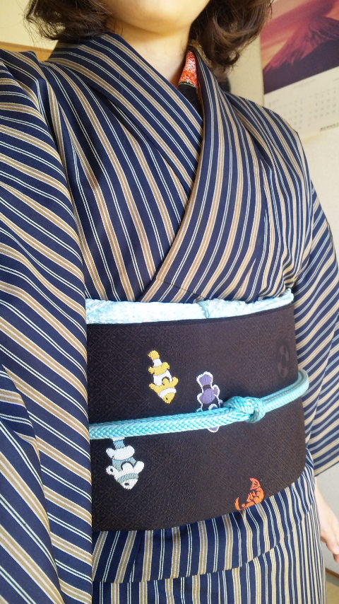 いつものお太鼓結びではなく、珍しく角出し結びで。
