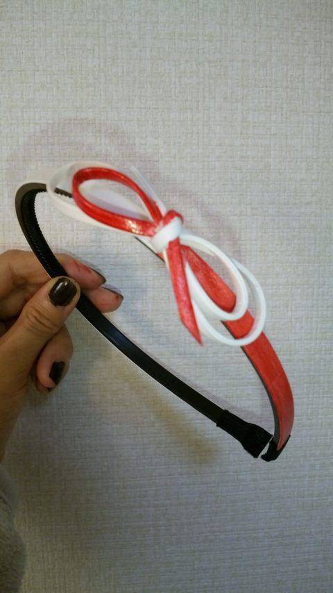 元々真っ白な合皮製のカチューシャでしたが、コピックの赤で半分着色。