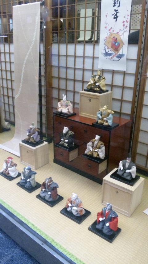 十二支のお人形、頂点にいるのが寅で、卯辰巳午未…とピラミッド。