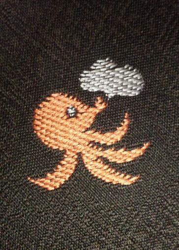 帯は海の生き物の刺繍。