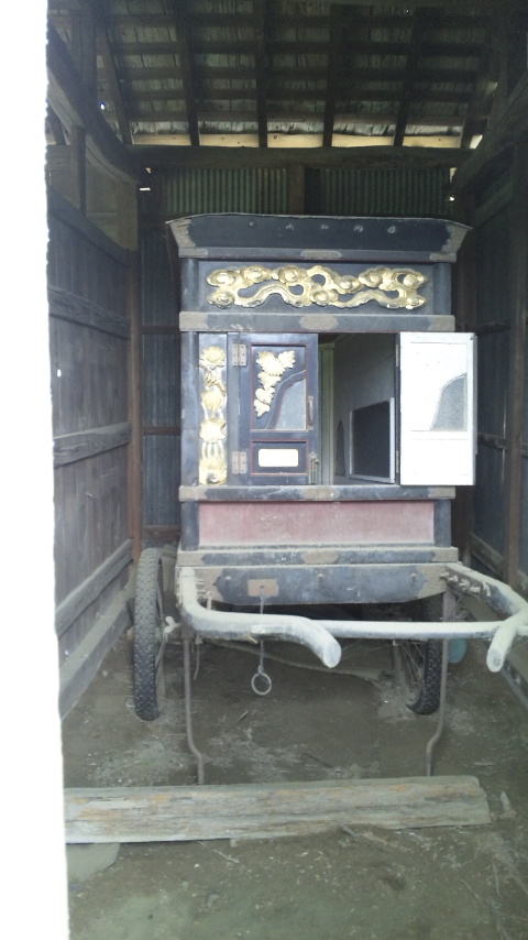 これ、土葬していた頃に棺桶を乗せて墓場まで運んだ車だそうで。