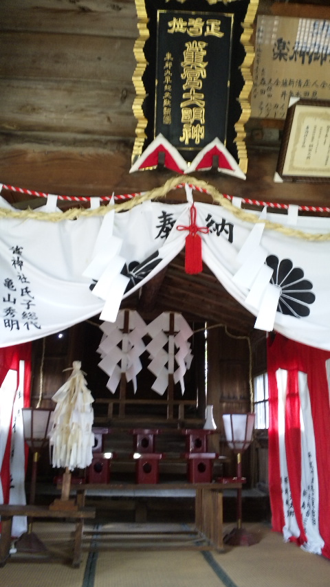 上の写真はうちの氏神様の小さな神社、の、なんとなんとの拝殿の中!!